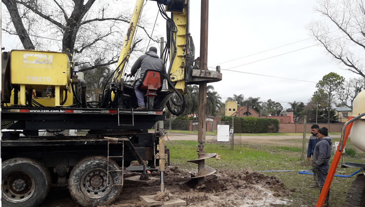 Del mismo modo durante el mes de septiembre S&D Consultoría realizo en la localidad de Sauce Viejo la Dirección Técnica de la fundación del Tanque de Agua en el marco de la obra de “Provision de Agua Potable para los Barrios Jorge Newbery y Altos del Sauce” que permitirá abastecer a 3400 lotes de la localidad. Para la fundación se realizaron 4 pilotes de 0,90m de diámetro y 6,50m de profundidad, cabezales de 1,10m x 1,10m x 0,60m y viga de fundación de 0,40m x 0,60m. En los próximos días se procederá al izado de la torre reticulada de 17m de altura con el tanque de PRFV de 150m3 de capacidad.