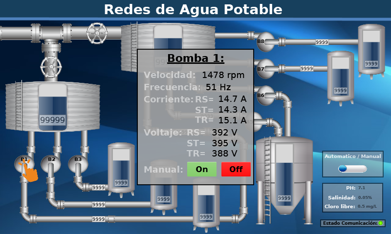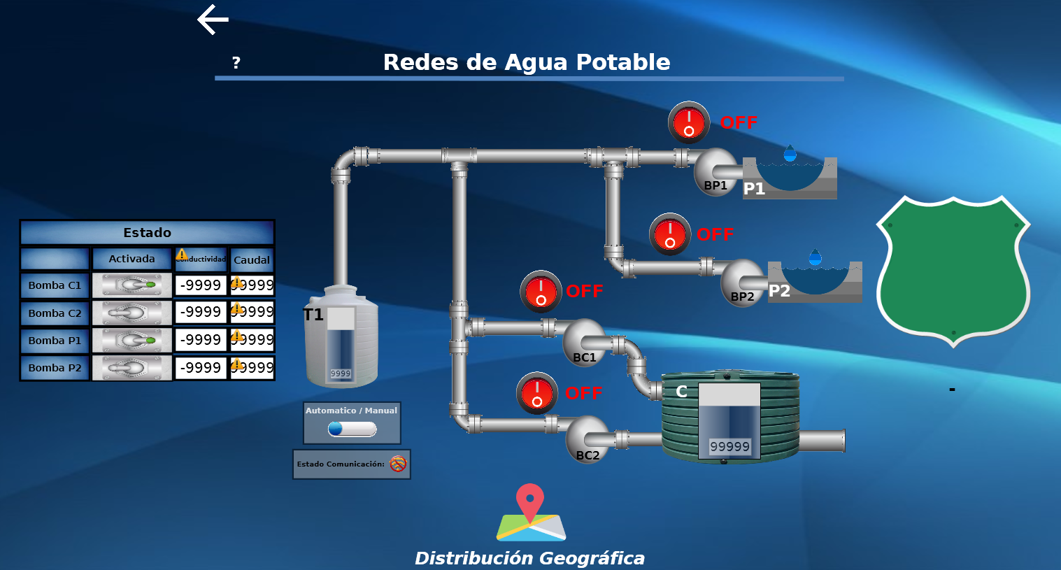 Visión general del producto La innovación en control de procesos es un aspecto esencial para mejorar la eficiencia operativa de trabajo y optimizar sus métodos de organización, producción y/o distribución. A través del despliegue de nuevas tecnologías en automatización y comunicación, se logra transformar una red de agua potable estándar en un sistema eficiente, seguro y adaptable. El objetivo de nuestros ingenieros es ofrecer un paquete básico de control al que se le permite adicionar una amplia gama de prestaciones y funcionalidades, según los intereses del cliente. De esta manera, se otorga la posibilidad de efectuar mejoras en distintas etapas sin una necesidad de cambio radical que lo obligue a realizar grandes inversiones en el corto plazo. Esto es posible gracias a que cada punto de la red está interconectado inalámbricamente por medio de módulos de radiofrecuencia de alto alcance, por lo que si es necesario agregar un nuevo punto a la red, solo bastará incluirlo en la programación en el centro de comando.